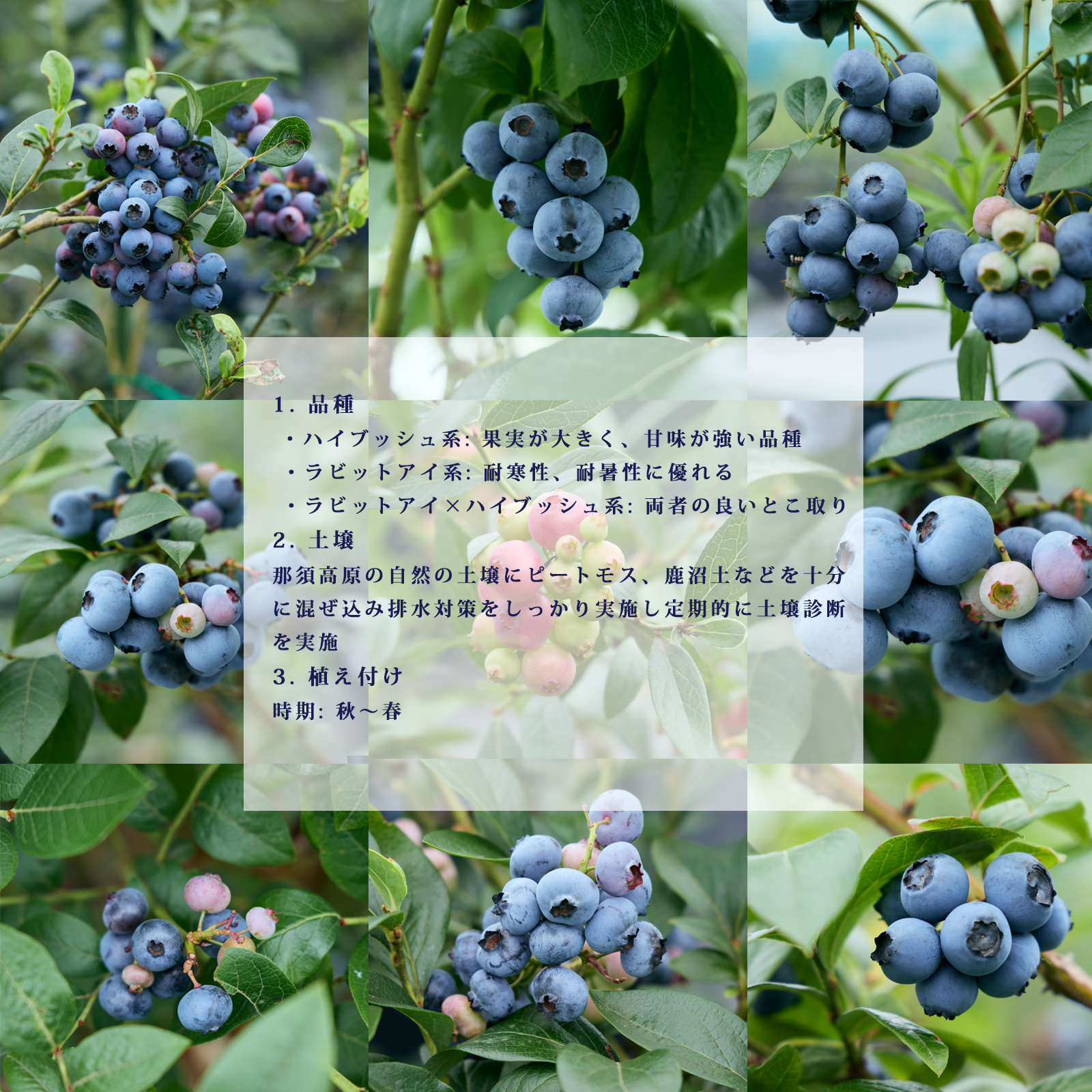 最高級ブルーベリーを栽培するために、単に大きく甘いだけでなく、風味、色合い、そして安全性など、総合的な品質の高さを実現しています。